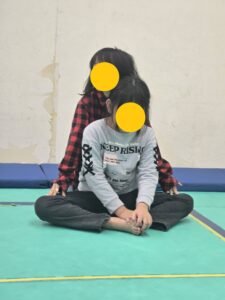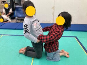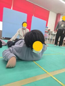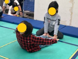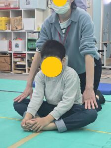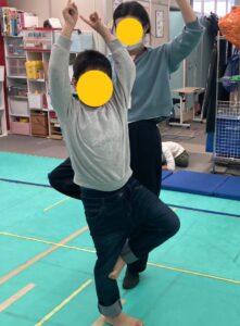 放デイのおともだちがおもしろストレッチしています。