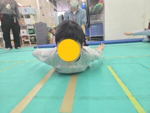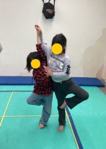 つぎは、身体をそらせて飛行機ポーズ!みんながんばってるね!
