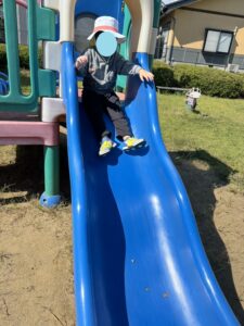 すべり台を楽しんだり🎵落ち葉をちぎって滑られたり🍂