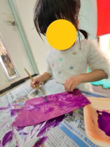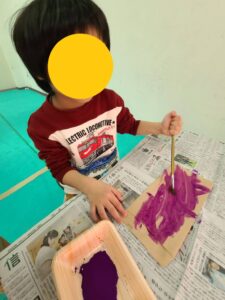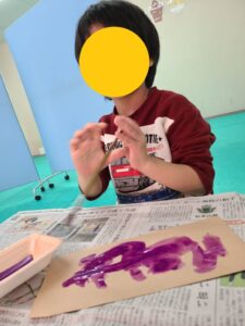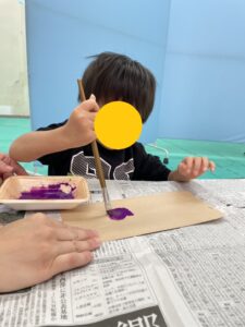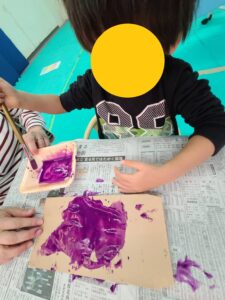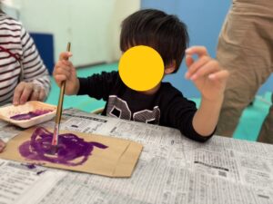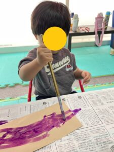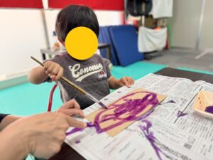 さあ、ウオーミングアップだ!むらさき色をぬーりぬり!ぐーるぐる!