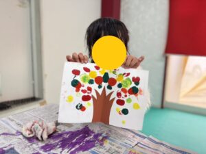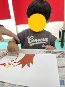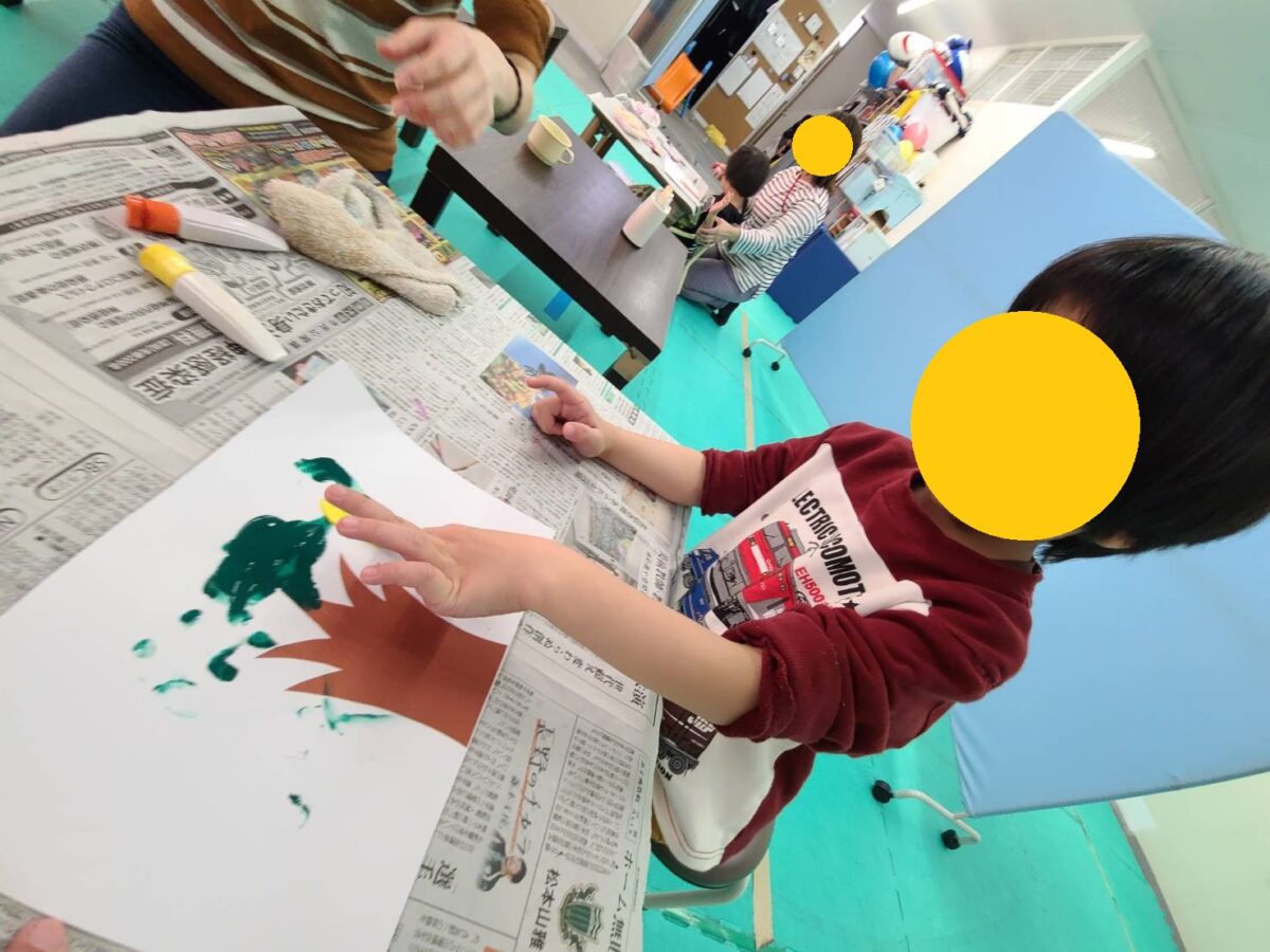 さあ今度は、木の幹に葉っぱをつけるよ!
