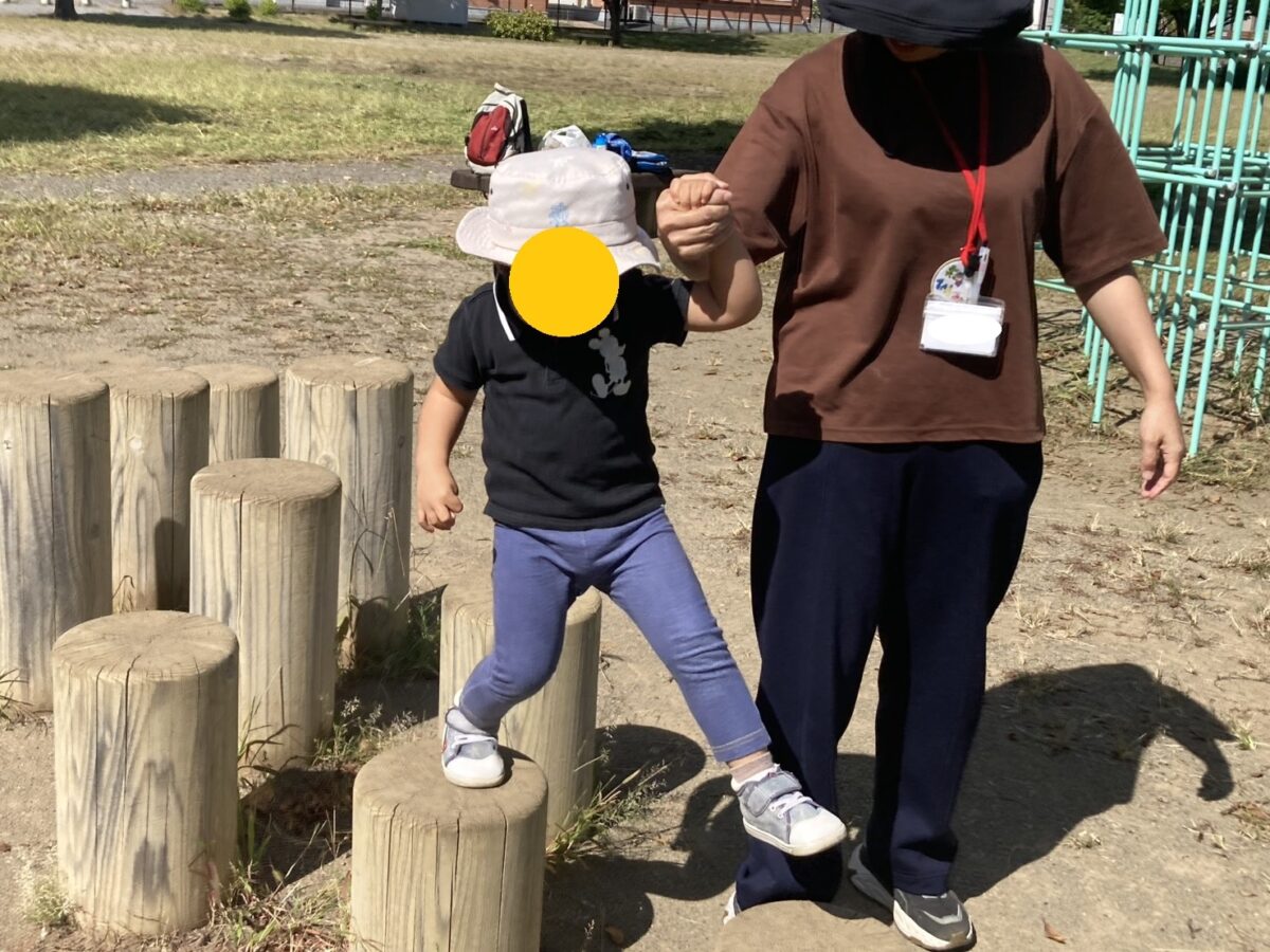 丸太の上を、いっちに、いっちに! ひとりでもへっちゃらだい!