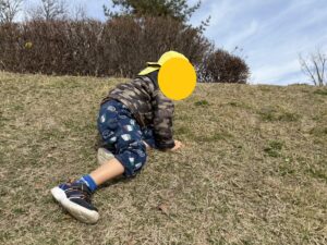 滑ったあとは、坂道を自分の足でしっかりのぼっていきますが・・・