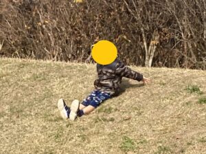 滑ったあとは、坂道を自分の足でしっかりのぼっていきますが・・・