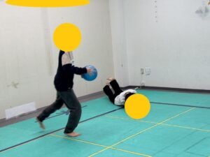 どんどんあたっていくので、「あと何回?」と確認すると。「あと10回」「あと5回」と動きながらもしっかりといお互いのチームの数を把握しながら勝負を楽しんでいました。