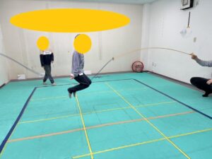 今回も、縄跳びをしていると、その様子を見て一緒に参加してきたお友達。