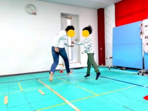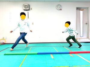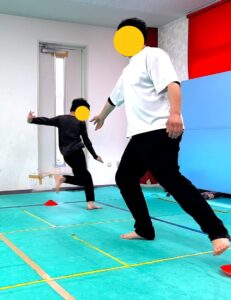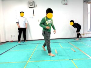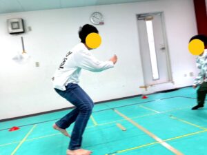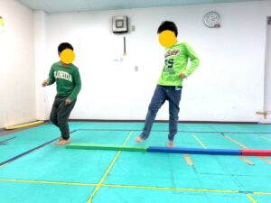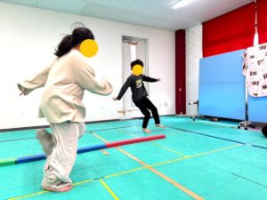 今度は、ソフト平均台を中央に置いてまたがらないように追いかける鬼ごっこ!