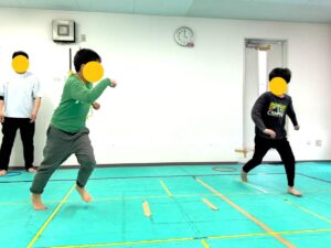 今日は、フェイントをうまく使って抜け切る「フェイント鬼ごっこ」をしました。