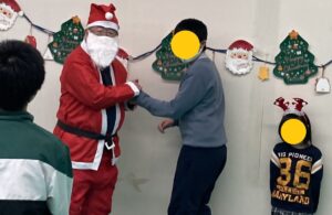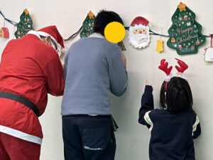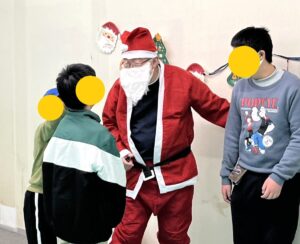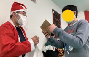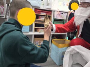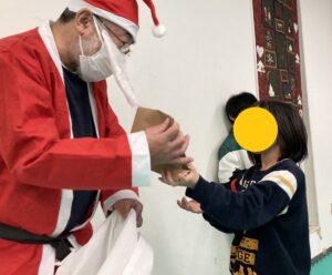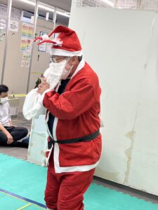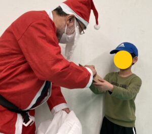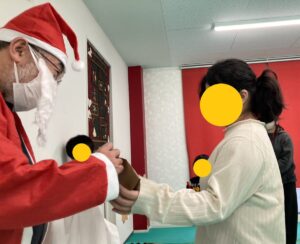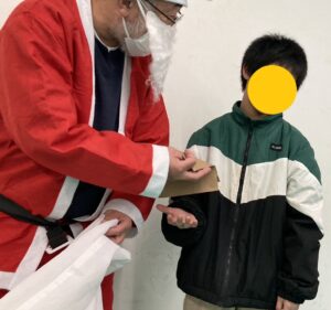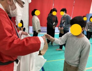 さてさて、おともだちといっぱい遊べたので、プレゼントの時間だね。みんな一言サンタさんにお話ししてプレゼントをいただきました。楽しかった。また来年も来てくれるかな。きっと来るね!