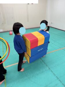 跳び箱も力を合わせ…フープも分け合いっこしながら…