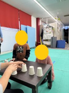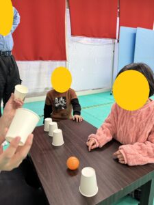 スタッフと一緒に目で追いながら「せ~の!!」と、開けたところは違う紙コップでしたが、見事にお友達が正解していました!!