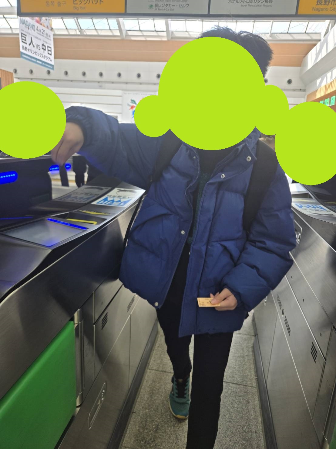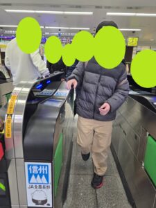 かなりの満員状態でしたが、みんなで真ん中に集まって吊り革をつかまったりスタッフにつかまりながら長野駅へいきました。