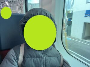 行きの電車とは違い、かなり空いていたので座席に座りながら周りの景色を眺めたり、いつの間にか眠っていたお友達も…