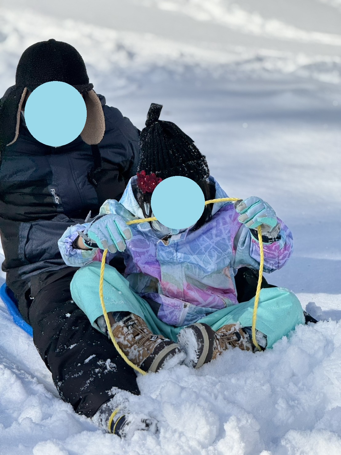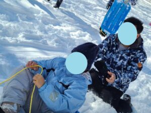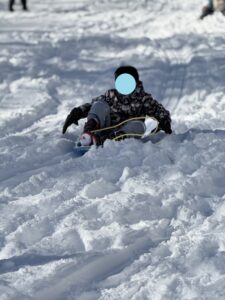 雪がふっかふかすぎてソリがなかなか滑らず…