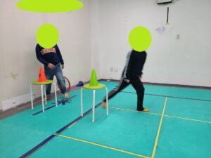 ルールとしては、自分のコーンと同じ色のコーンをタッチすると鬼が交代するシャトルランを繰り返します。