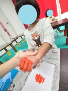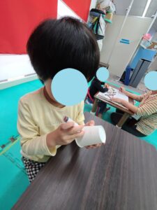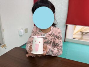 舌の色を選んだり、目のシールを貼って楽しく制作出来ました!