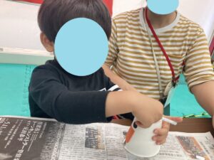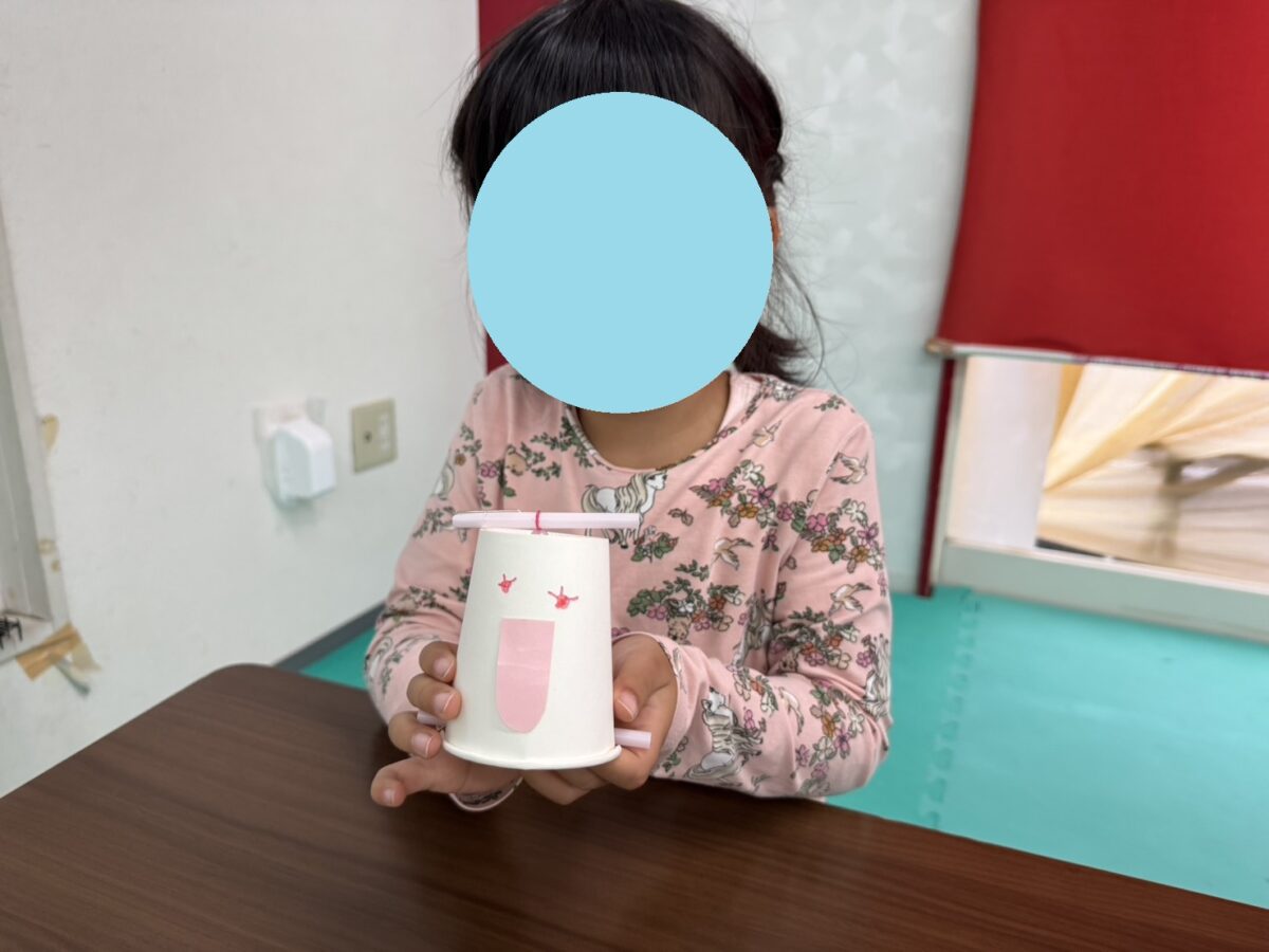 今日はあいにくの天気だった為、運動あそびの後 制作を行いました!