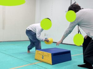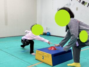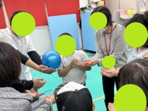 今回の運動遊びは、お友達、スタッフみんなで協力するゲームをしました。
