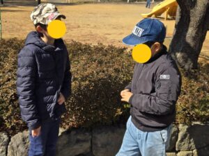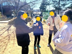 みんなで公園に集まりウオーミングアップ!散歩して体をほぐそう!