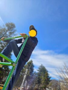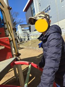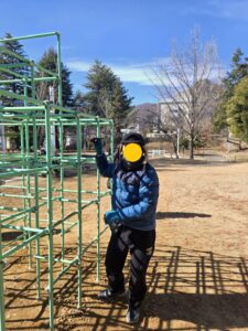 体がほぐれてきたね。水分補給して遊具で遊ぼう!
