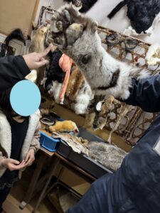動物の毛皮などで変身できる展示もありました。