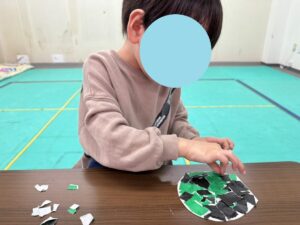 細かくちぎったり、配色を考えながら貼ったり…