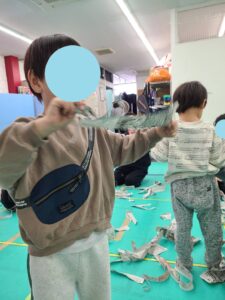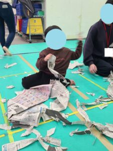 ということで、活動の後は新聞紙を使って皆で遊びました。