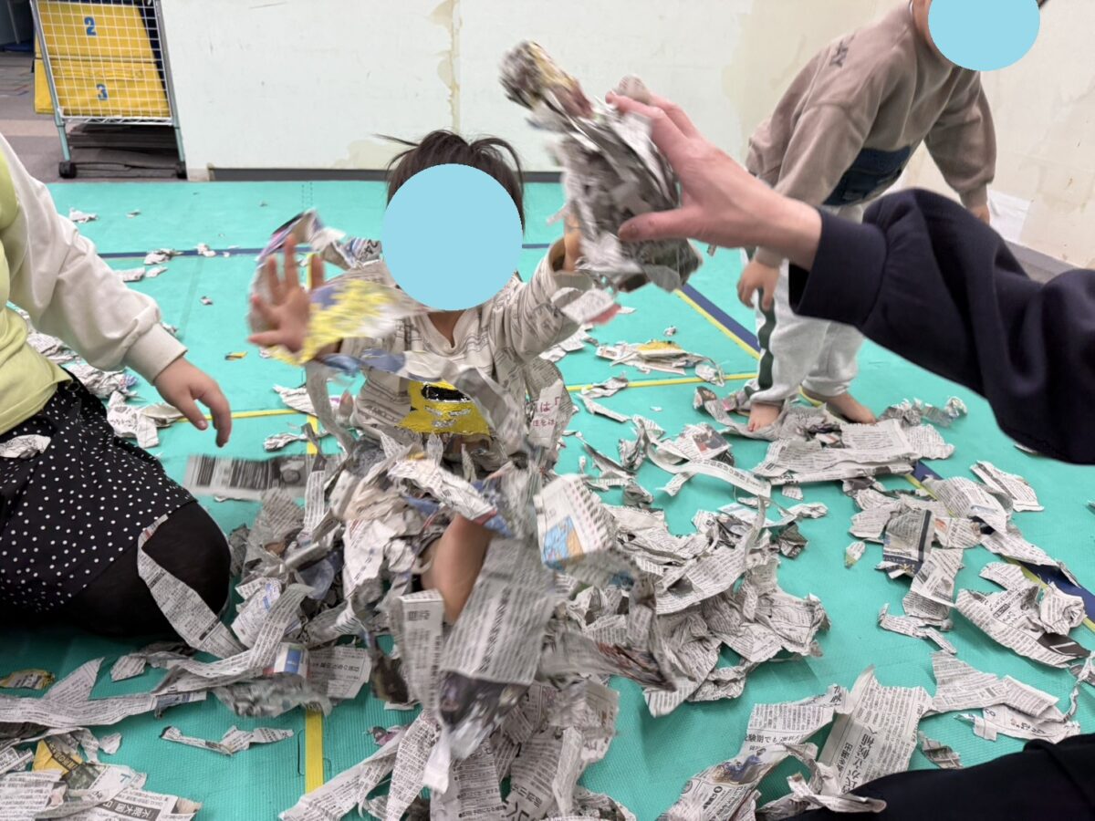 破いた後は皆で新聞プールにして遊びました。