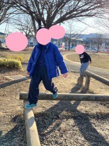 木の平均台をすいすいと歩いてみたり