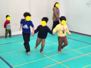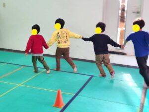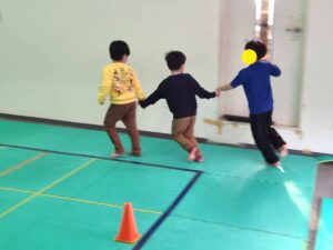 二人三人四人で手を繋いで走ったよ!曲がり角に気を付けて!