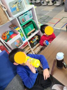 ゴールして、一息ついて、のどかわいたおともだち手を挙げて!
