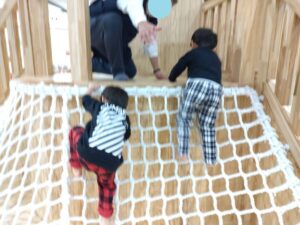 網の遊具も手足を上手に使って登っていました。