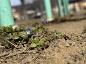 ジャングルジムの片隅にオオイヌノフグリも咲いていました。