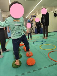 教室では軽く運動遊びをしてから、せっかくの秋晴れなので近くの公園へ。