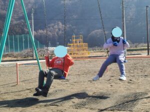ブランコは皆で順番こで、譲り合いながら遊ぶ姿がありました。