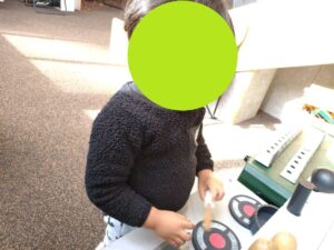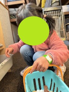 調理用のコンロもあったので、児童発達のお友達はカゴに好きな食べ物を入れて、お買い物、調理など、ごっこ遊びを楽しんでいました☆