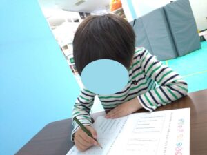 沢山動いた後は…机上活動で静かに集中して取り組みます。