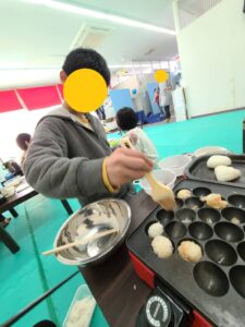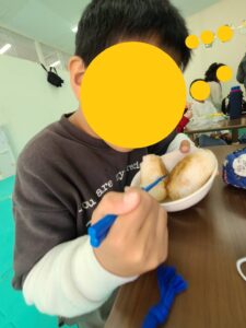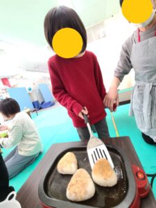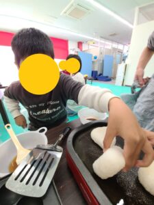 みんなで、おにぎり焼いたよ。醤油を塗って。香ばしい香りがたまらない。