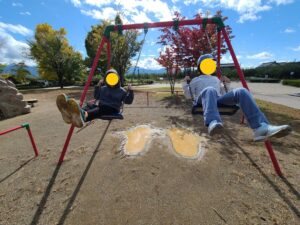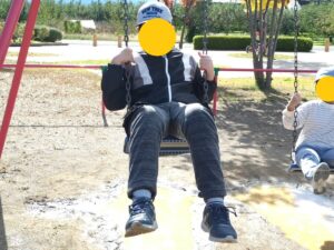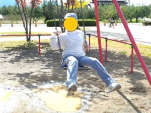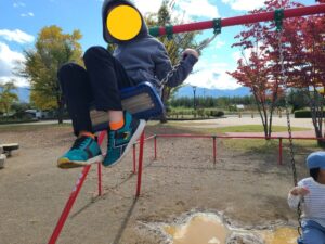みんなスリル満点のブランコが大好き?靴を濡らさないように気を付けて!