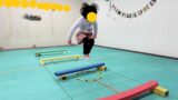 壁までビニール袋を持たずに走る速さだけで袋を落とさずに壁まで走り切るのが目標です!