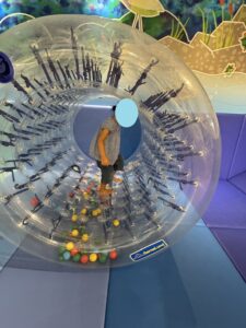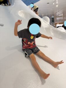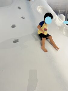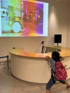 スクリーンで遊ぶコーナーを見つけ楽しむ姿がありました。